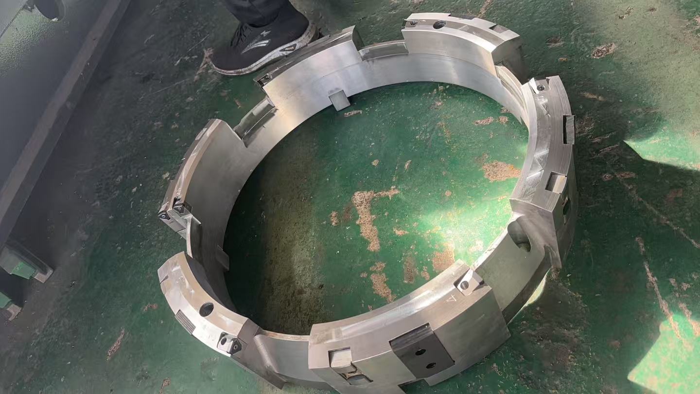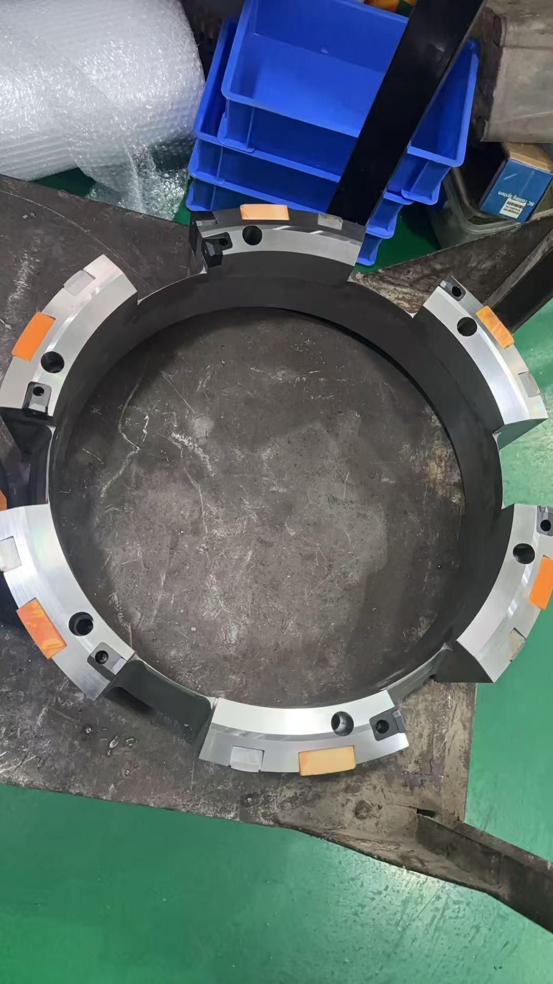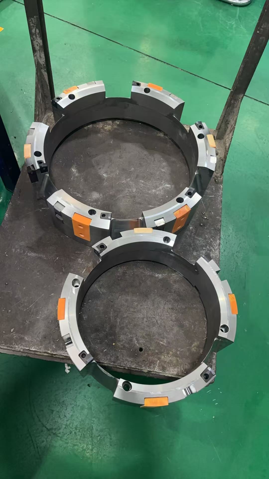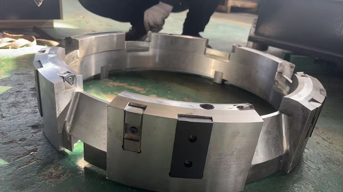 针对 Φ560mm 超大孔径、超深孔加工需求,钻星560套料刀应运而生,专为重型BTA/喷吸钻系统量身打造,最大加工深度可达30m,轻松攻克镍基高温合金、超大直径实心棒料等难加工材料的加工壁垒。相较于380型,560型采用重型加强刀体结构,刚性更强,可承载更大切削载荷;创新多刃错齿排布搭配多组耐磨导向块,进一步提升加工过程中的导向精度与防振性能,圆柱度误差可控制在0.03mm/1000mm以内。同时,刀具适配10-15MPa高压内冷系统,高压冷却液直冲切削区域,实现高效降温与排屑,即使在长时间连续加工工况下,也能保持稳定的加工精度。在石油化工厚壁管、风电主轴、重型机械缸体等超大孔径部件的加工中,钻星560套料刀可显著降低机床能耗,减少材料浪费,为重型制造企业的产能升级赋能。